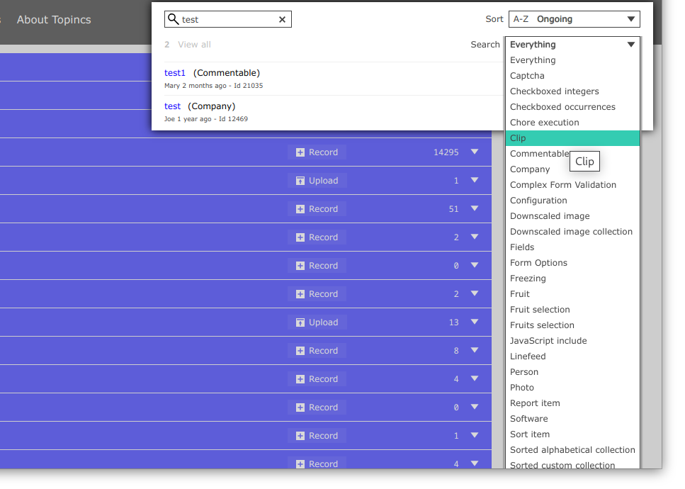 Type select box does not fit on screen if too many topic types: Before